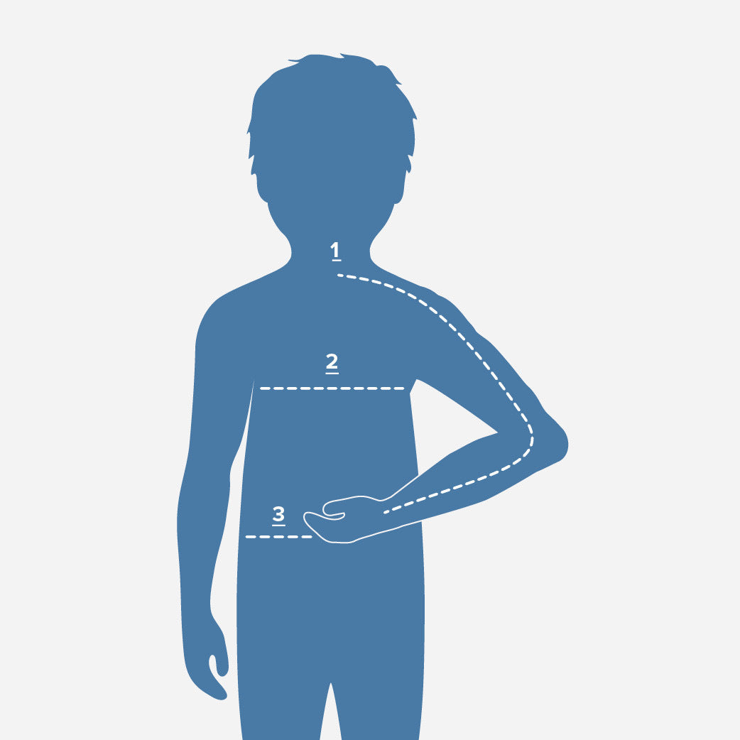 - CHEST: Tape measure should be placed under arms. Measure at the fullest circumference around the chest.