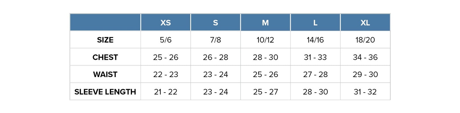 These sizes and body measurements are intended as a guide to assist with sizing – these are not exact garment measurements. Locate the measurements below, and the chart will tell you the approximate Charles River size that will fit best.